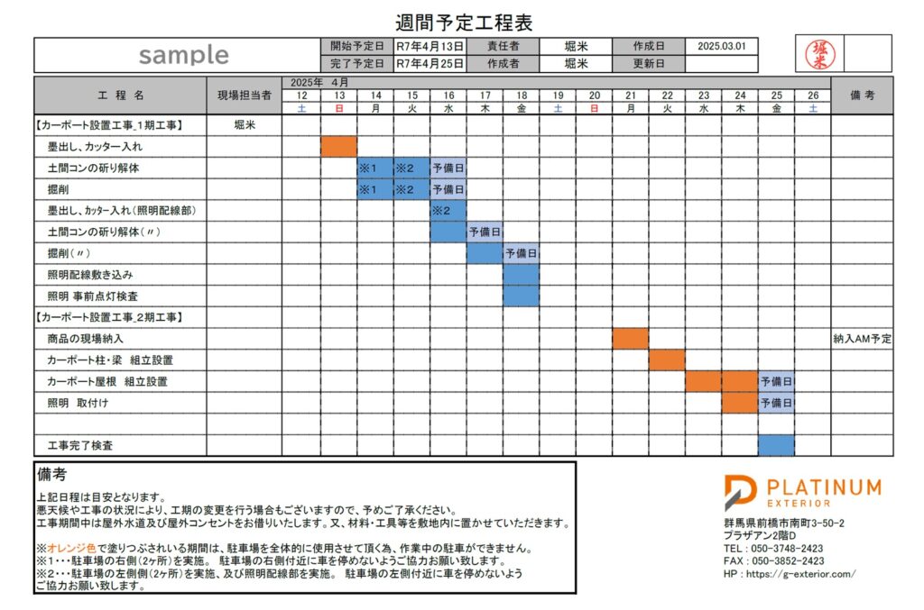 ■ 工程表をつくってもらう